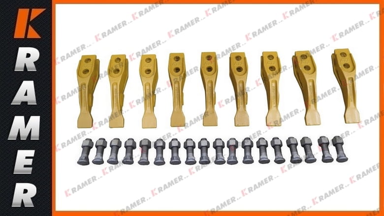 Komplet 9 zębów wraz z 18 śrubami i nakrętkami łyżki przedniej JCB 3CX 4CX