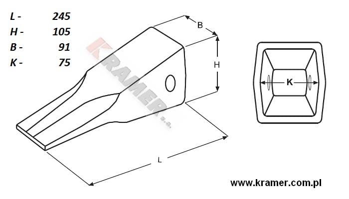 Kształt zęba umożliwia lepszy opływ materiału oraz lepszą penetrację gruntu. Posiada wzmocnione ścianki kieszeni, ostrze w kształcie dłuta dla zwiększenia penetracji podłoża. Żebro wzdłuż zęba wzmacnia go i optymalizuje proces samoostrzenia podczas pracy.