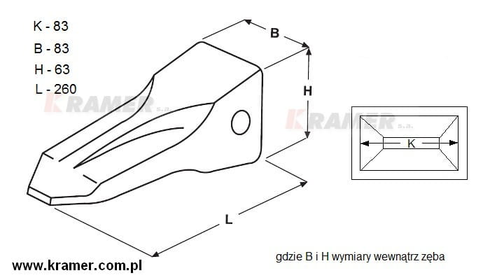 Kształt zęba umożliwia lepszy opływ materiału oraz lepszą penetrację gruntu.Posiada wzmocnione ścianki kieszeni, ścięte ostrze dla zwiększenia penetracji podłoża. Żebro wzdłuż zęba wzmacnia go i optymalizuje proces samoostrzenia podczas pracy.