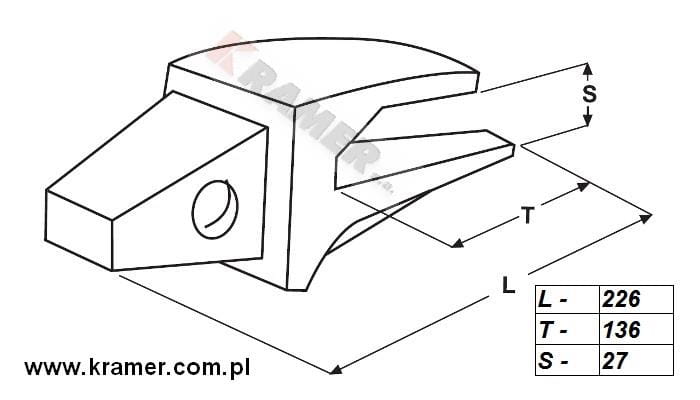 Popularny adapter / dziąsło nakładki zęba stosowany w małych koparkach i koparko-ładowarkach wspawywany na lemiesz o grubości do 25mm.