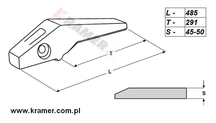 Adapter ładowarkowy wspawywany do wnętrza łyżki na lemiesz grubości od 45 do 50 mm