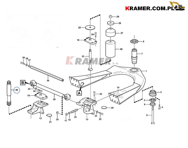 Amortyzator stosowany w wozidłach VOLVO A25D A25D 4x4 A25E 4x4 A25E A30D A30E