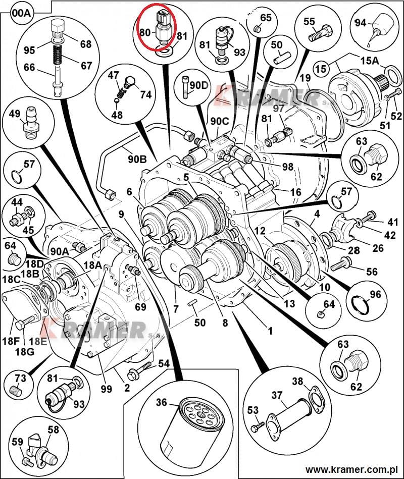 Czujnik ciśnienia oleju w skrzyni biegów (gwint: M12x1) stosowany w koparko-ładowarkach JCB 3CX / JCB 4CX i ładowarkach teleskopowych JCB.