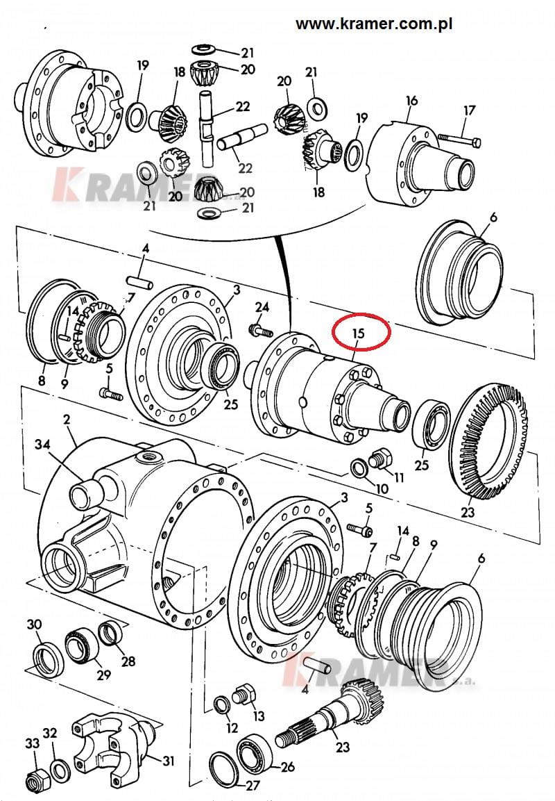 Kompletny dyferencjał (obudowa i satelity) maszyn budowlanych JCB. Stosowany w