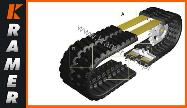 gąsienicy gumowej. Brak tzw. "szwu" łączącego elementy gąsienicy, eliminuje