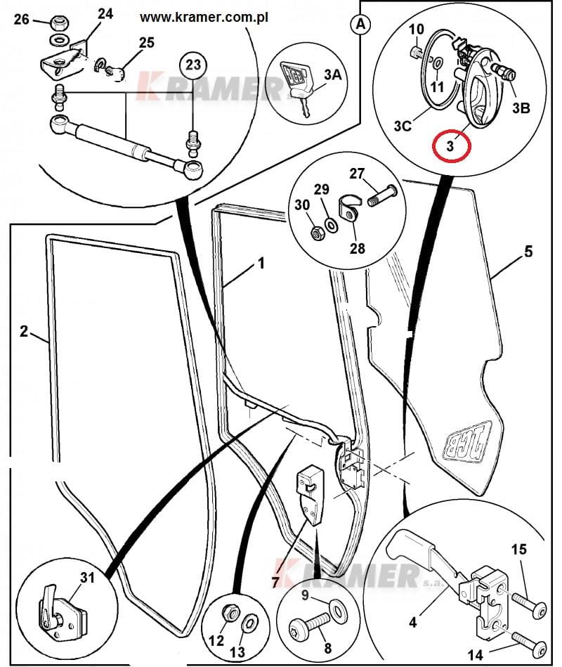 Klamka Drzwi do nowej kabiny (P21) koparko-ładowarek JCB 3CX / 4CX - lewa, 215/3CX 15, MIDI-CX i wielu innych