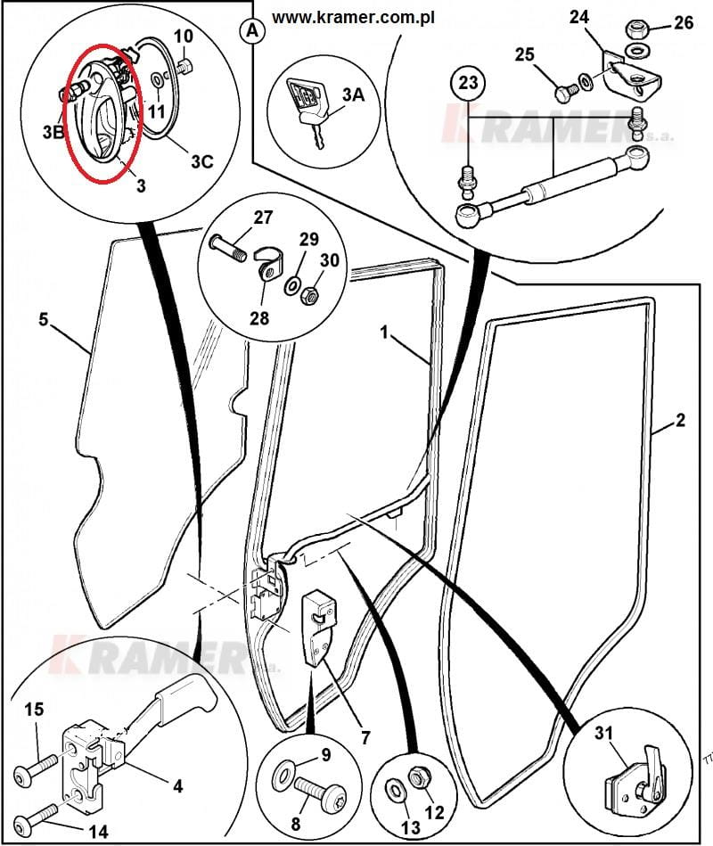 Klamka Drzwi do nowej kabiny (P21) koparko-ładowarek JCB 3CX i 4CX - prawa