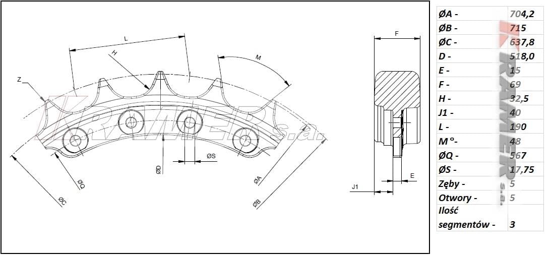 Skok (podziałka łańcucha) 190mm / 23 zęby / 23 otwory na śruby montażowe