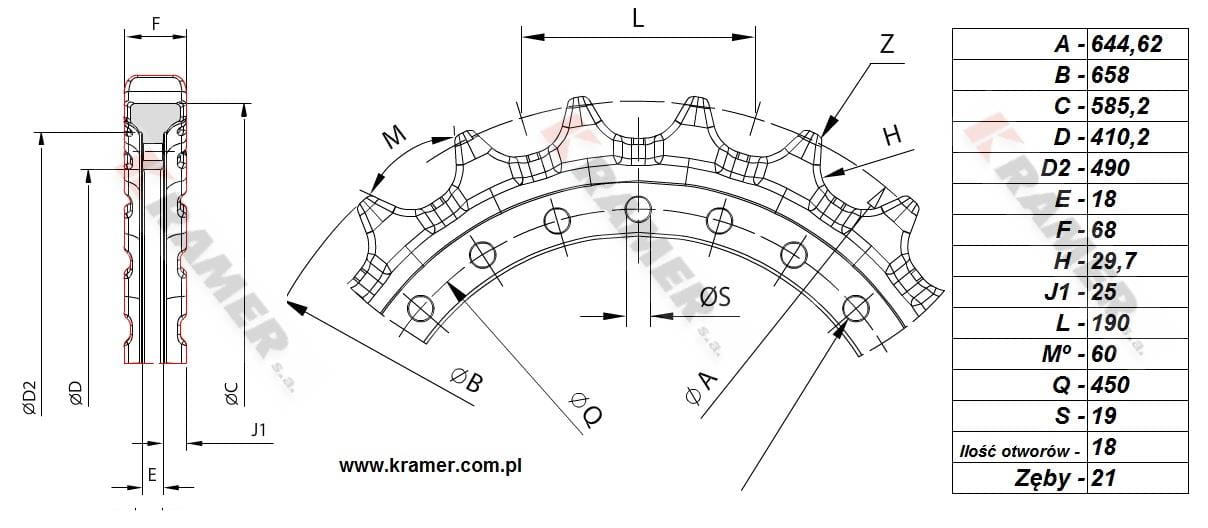 Koło napędowe VOLVO EC240 ECR235 21z. / 18otw.