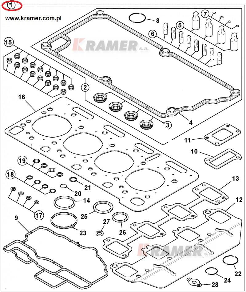 Komplet uszczelnień góry silnika JCB 3CX 4CX