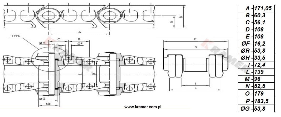 Łańcuch gąsienicy uszczelniany, wstępnie smarowany, na śrubę 5/8 cala, stosowany m.in. w koparkach