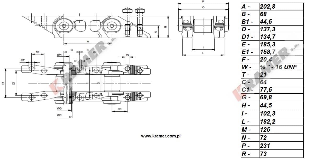 Łańcuch gąsienicy D6H D6R D6T smar. 45 ogn. KTS
