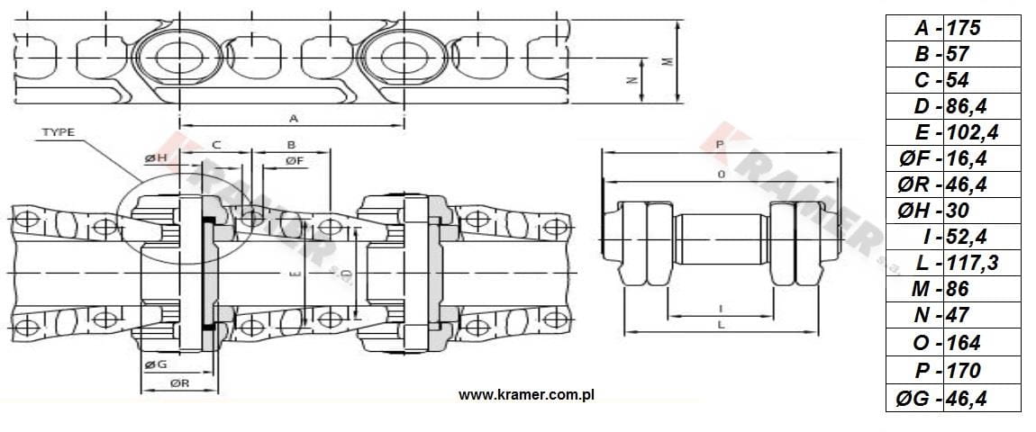Łańcuch gąsienicy uszczelniany, wstępnie smarowany , stosowany m.in. w koparkach