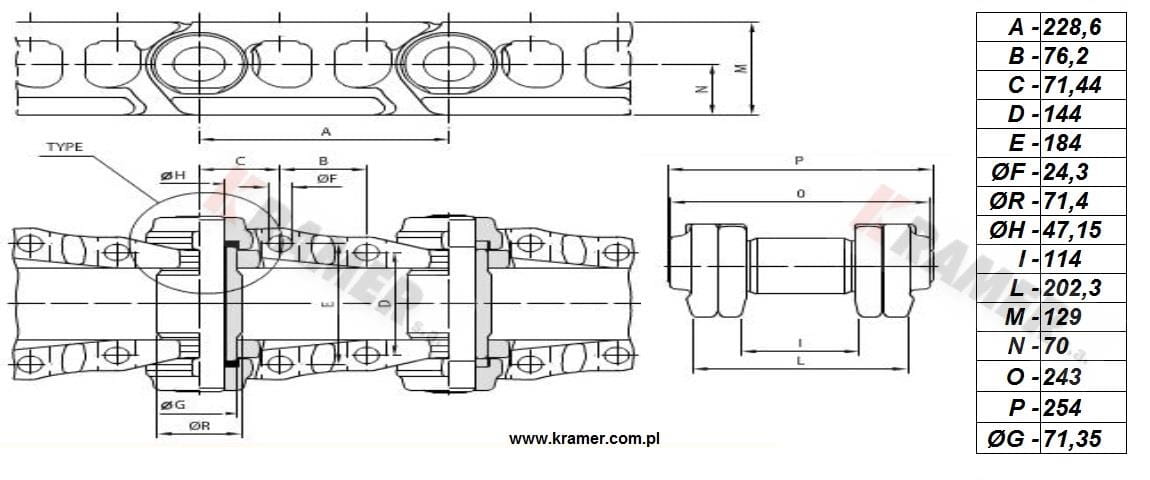 Łańcuch gąsienicy uszczelniany, wstępnie smarowany, stosowany m.in. w koparkach :