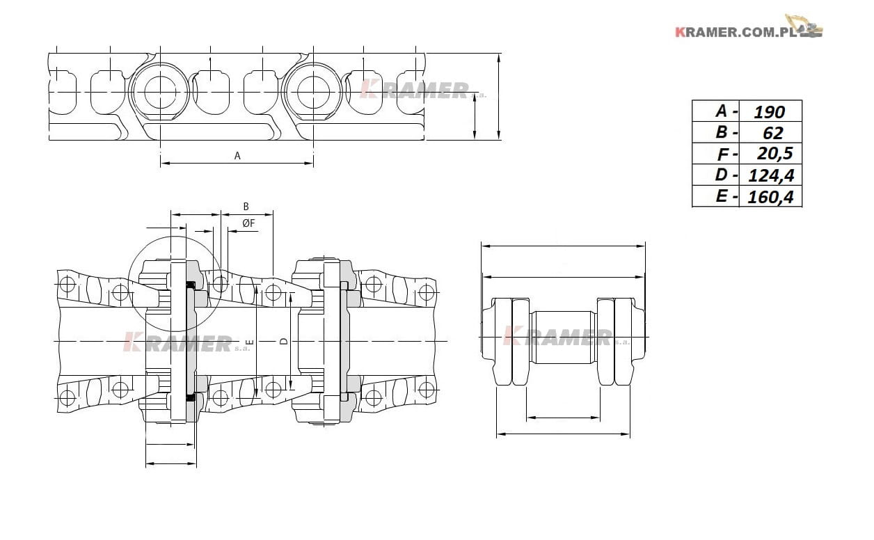 Łańcuch gąsienicy uszczelniany, wstępnie smarowany, stosowany m.in. w koparkach