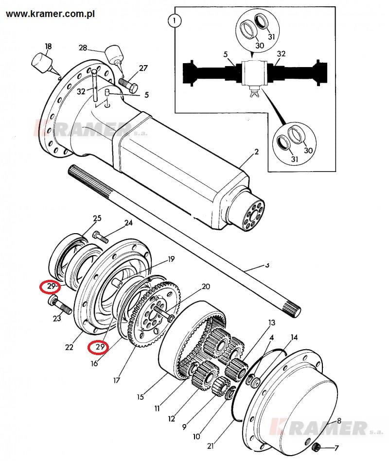 Łożysko piasty koła w koparko-ładowarkach