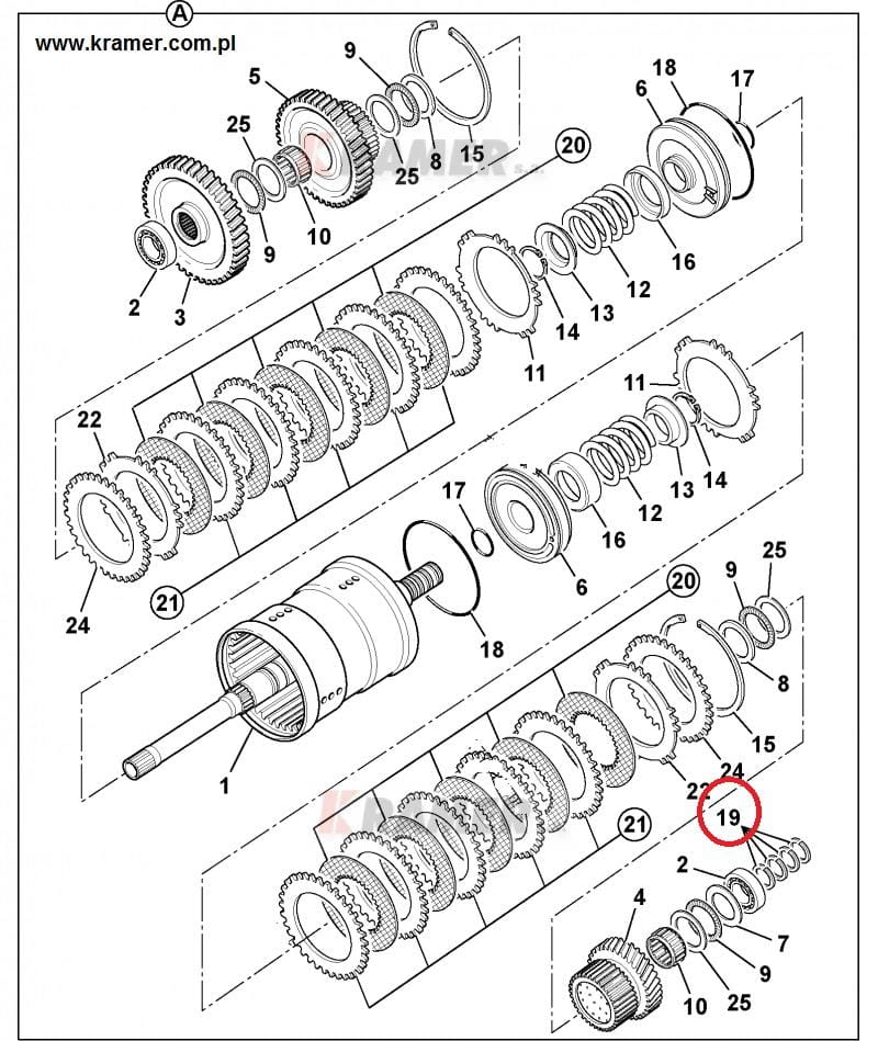Pierścień teflonowy wałka skrzyni JCB