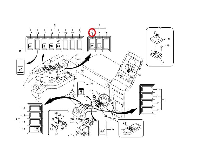Przełącznik kabinowy wycieraczek góra VOLVO EC210
