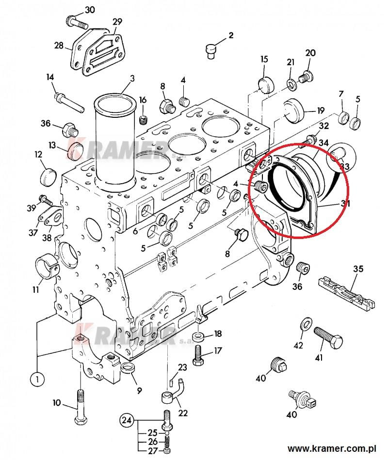 Uszczelniacz wału korbowego z tyłu silnika. JCB 2CX / 3CX /