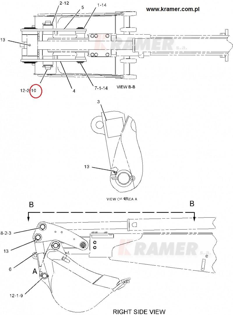 Sworzeń tylnej łyżki stosowany w koparko-ładowarkach marki