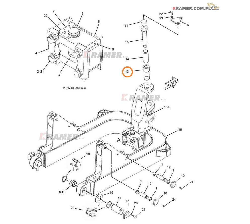 Dolny sworzeń mocowania pługa stosowany w spycharkach CAT D5M D5N D6K.