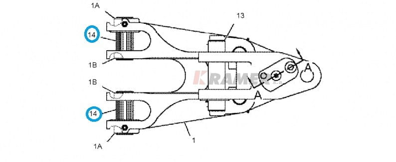 Sworzeń występujący w konikach koparko-ładowarek CAT 426C 430D 430E 436C 442E 444E
