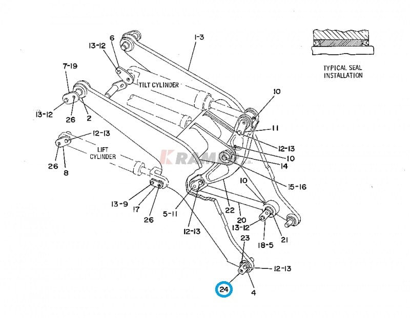 Sworzeń ramienia stosowany w ładowarkach CAT: 950G, 950H, 962G, 962H.
