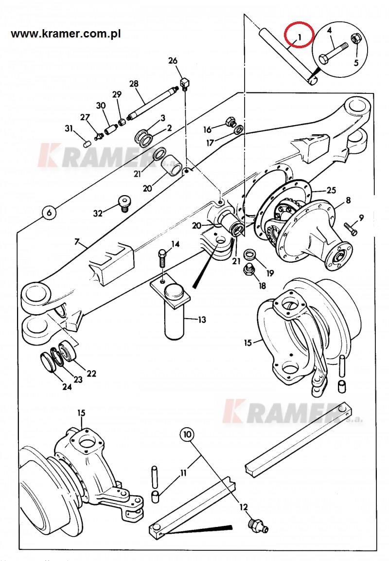 Sworzeń belki przedniej stosowany w maszynach JCB