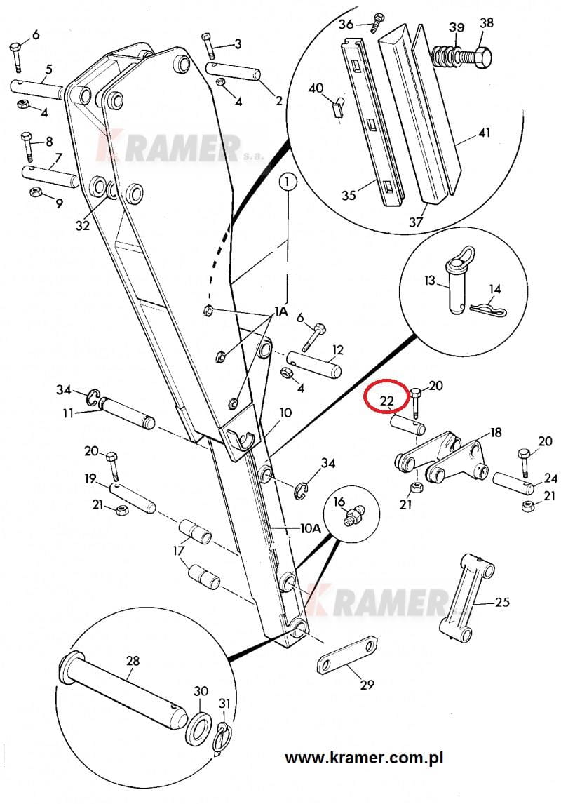 Sworzeń JCB 3CX 4CX łącznika ramienia łyżki