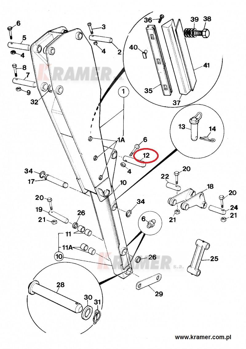 Sworzeń JCB 3CX 4CX łyżki tył, zapięcia siłownika