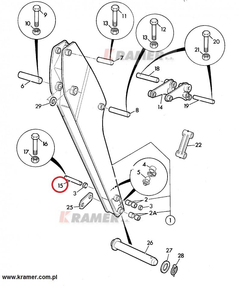 Sworzeń JCB 3CX 4CX mocowanie łącznika łyżki tył