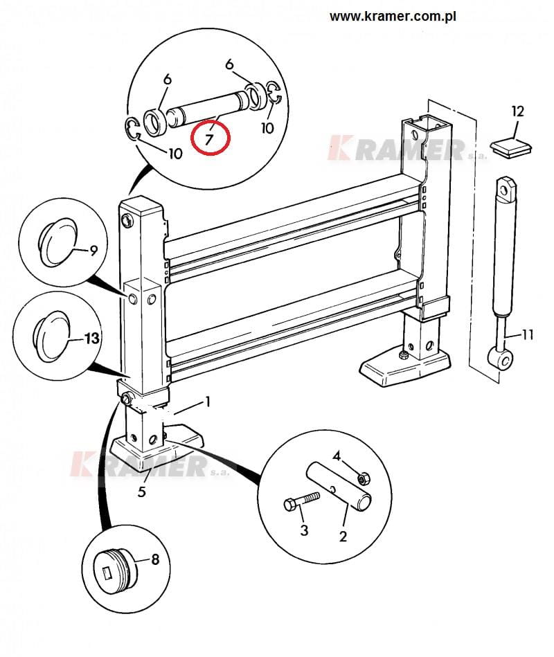 Sworzeń JCB 3CX 4CX stabilizatora górny