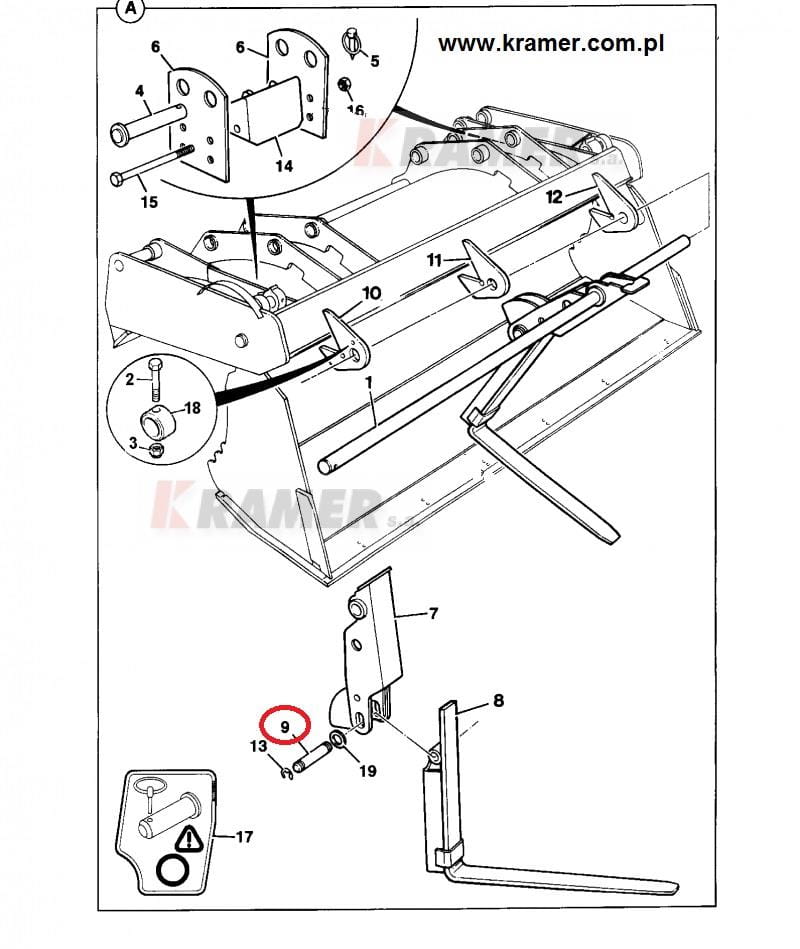 Sworzeń wideł stosowany w koparko-ładowarkach marki