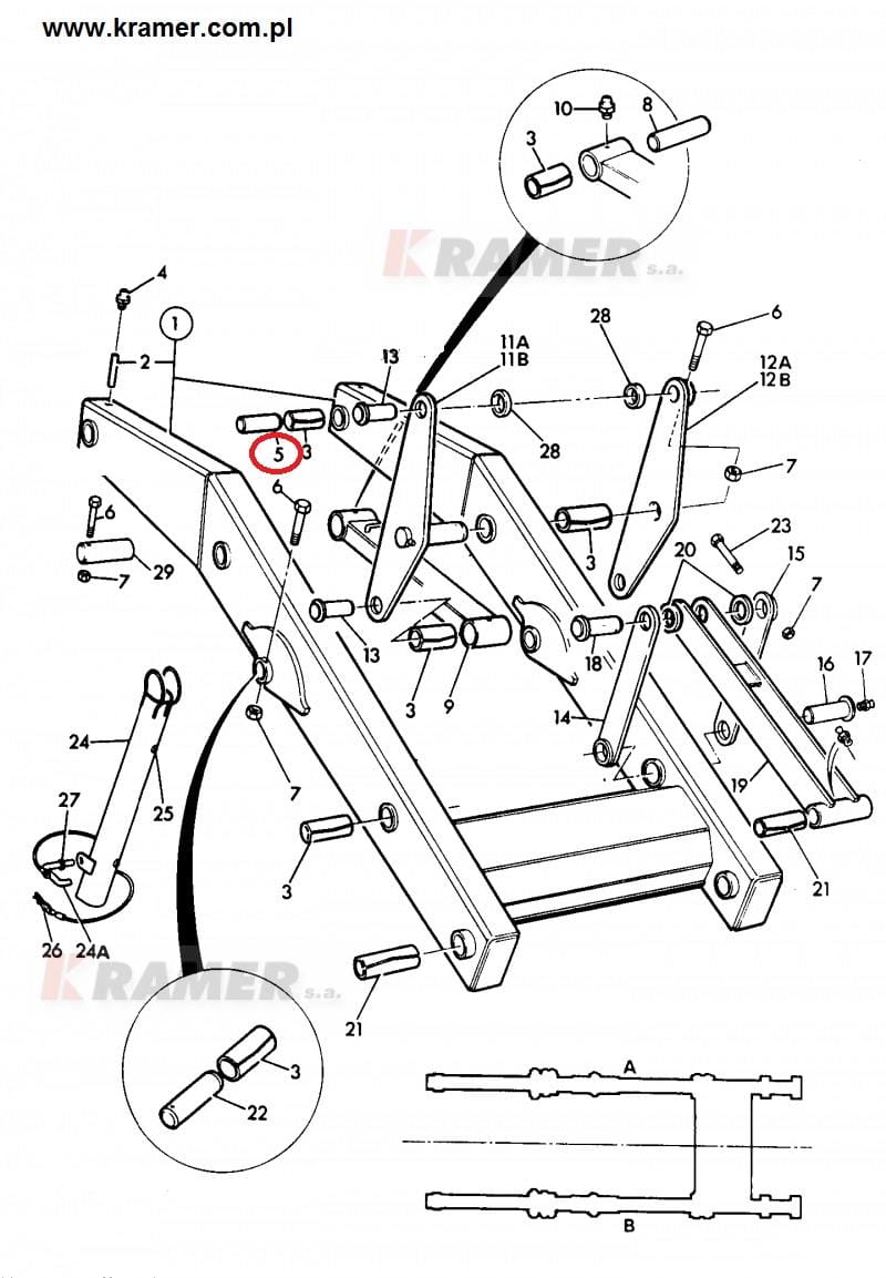 Sworzeń JCB 3CX 4CX wysiegu dippera łyżki