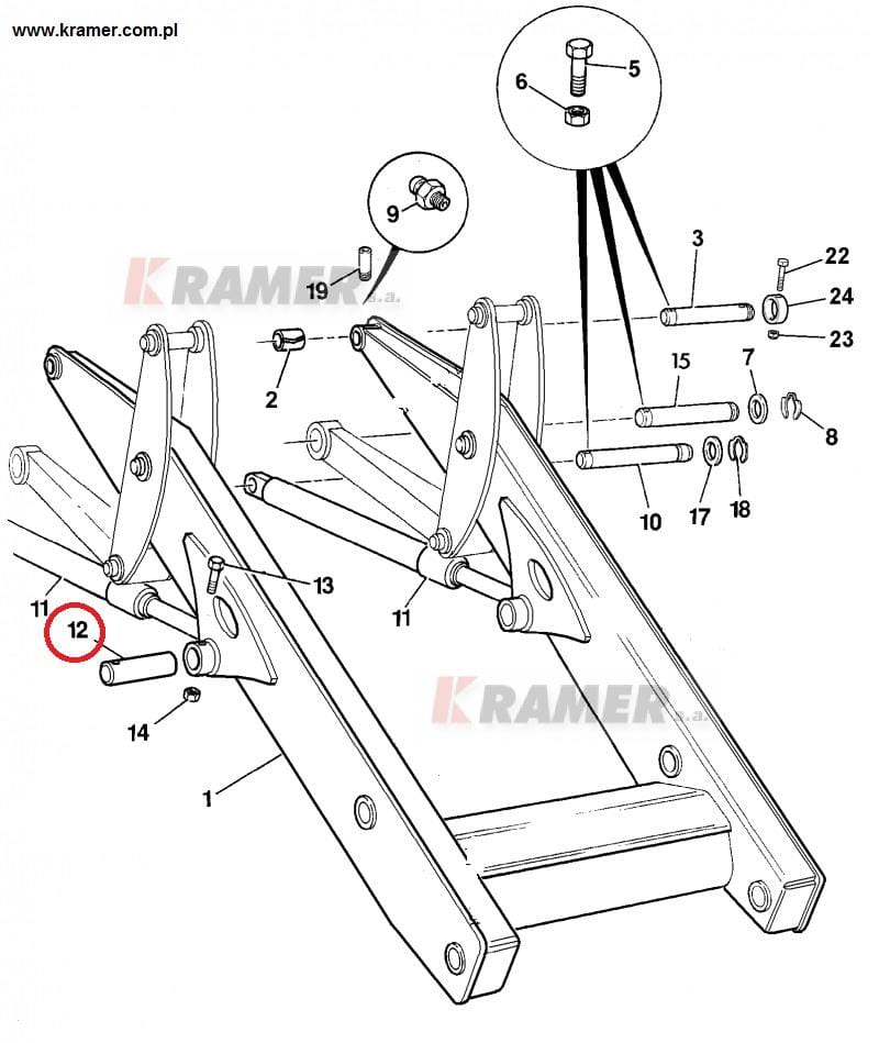 Sworzeń JCB 3CX4CX ramienia koparki i stabilzatora
