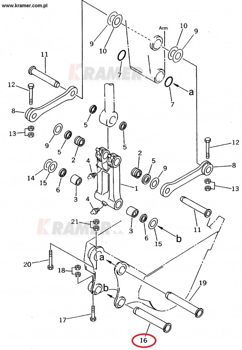 Sworzeń mocowania łyżki wysięgu KOMATSU.