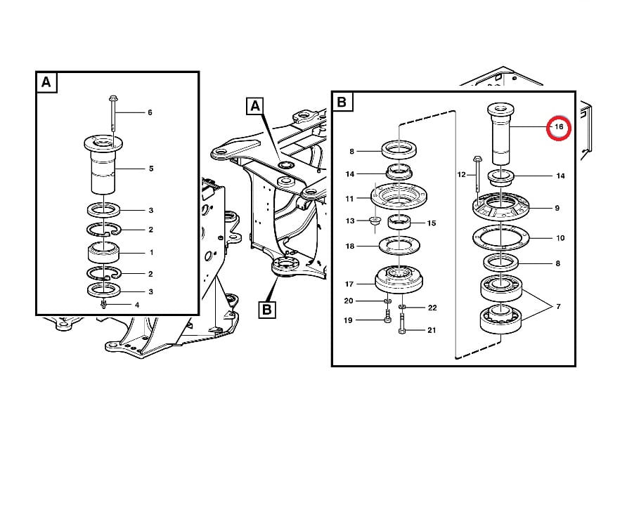 Sworzeń dolny łamania ramy stosowany w ładowarkach VOLVO: