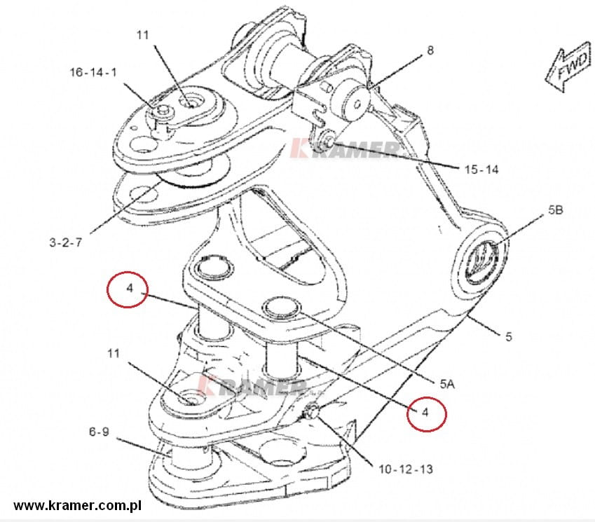 Sworzeń konika, ramienia tył. Stosowany w koparko-ładowarkach