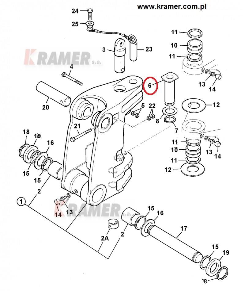 Sworzeń konika dolny stosowany w koparko - ładowarkach