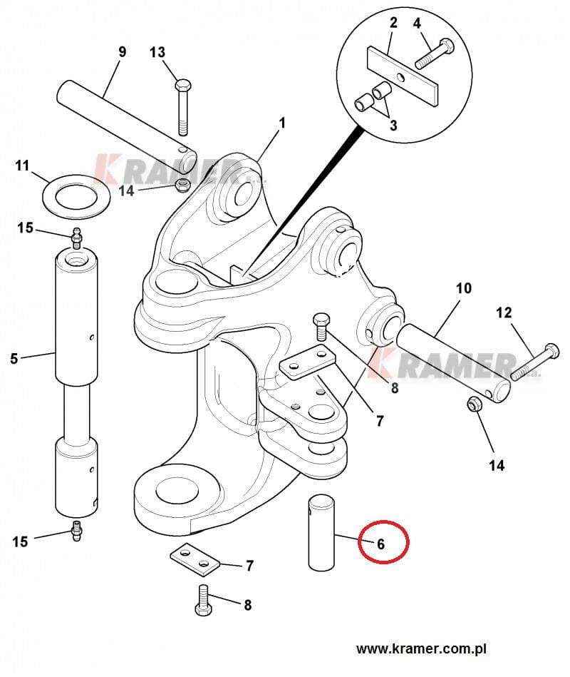 Sworzeń konika ( KINGPOST ) siłownika obrotu stosowany w minikoparkach JCB 8014 8016 8018 8020