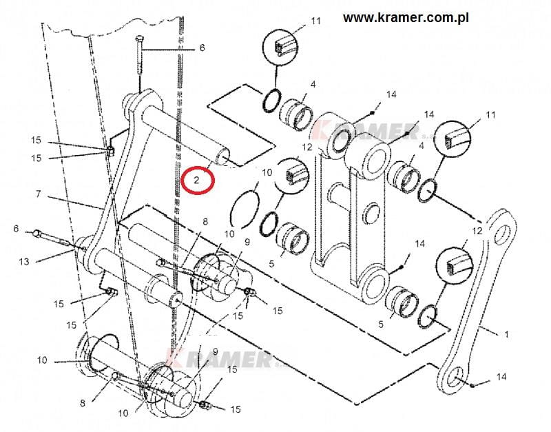 Sworzeń wysięgu łyżki. Występuje w modelach koparek CAT : 315 315B 315C 315L 315BL 315CL 317 317N 317B L 317B LN
