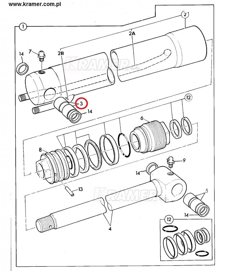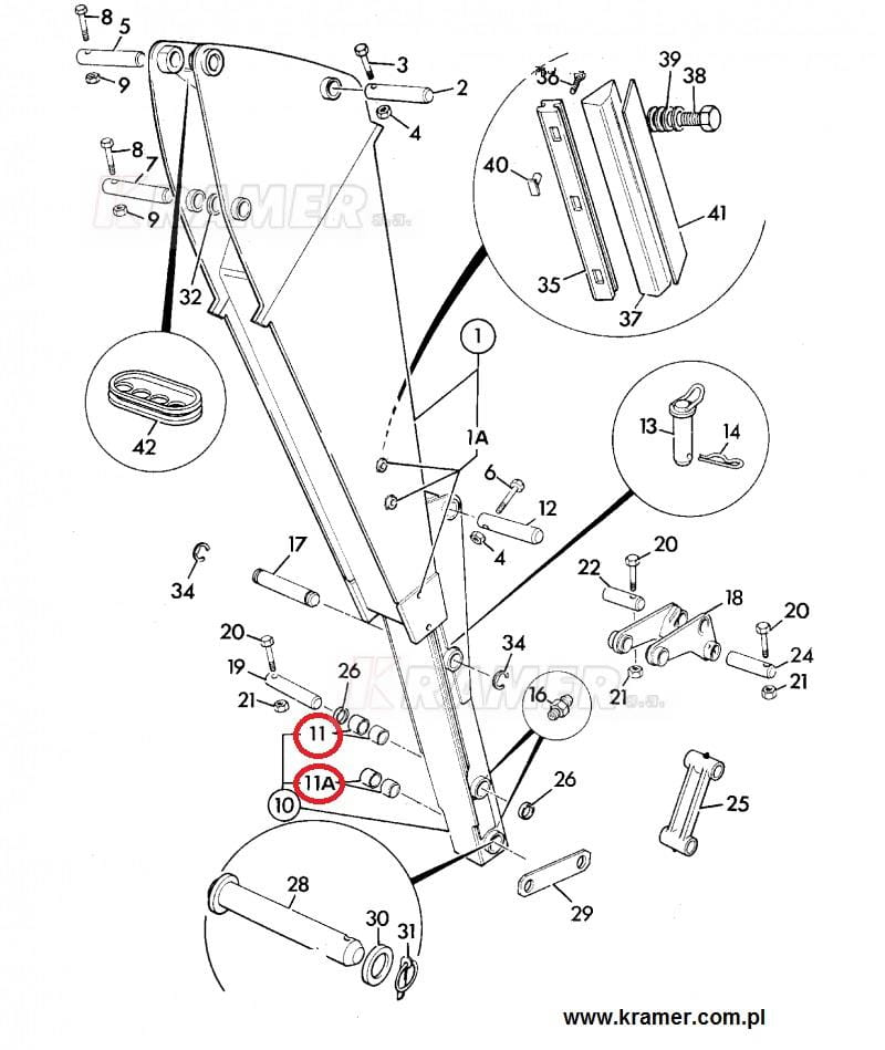 Przedostatnia tuleja w wysięgu, oraz górna w łączniku łyżki tylnej stosowana w maszynach JCB