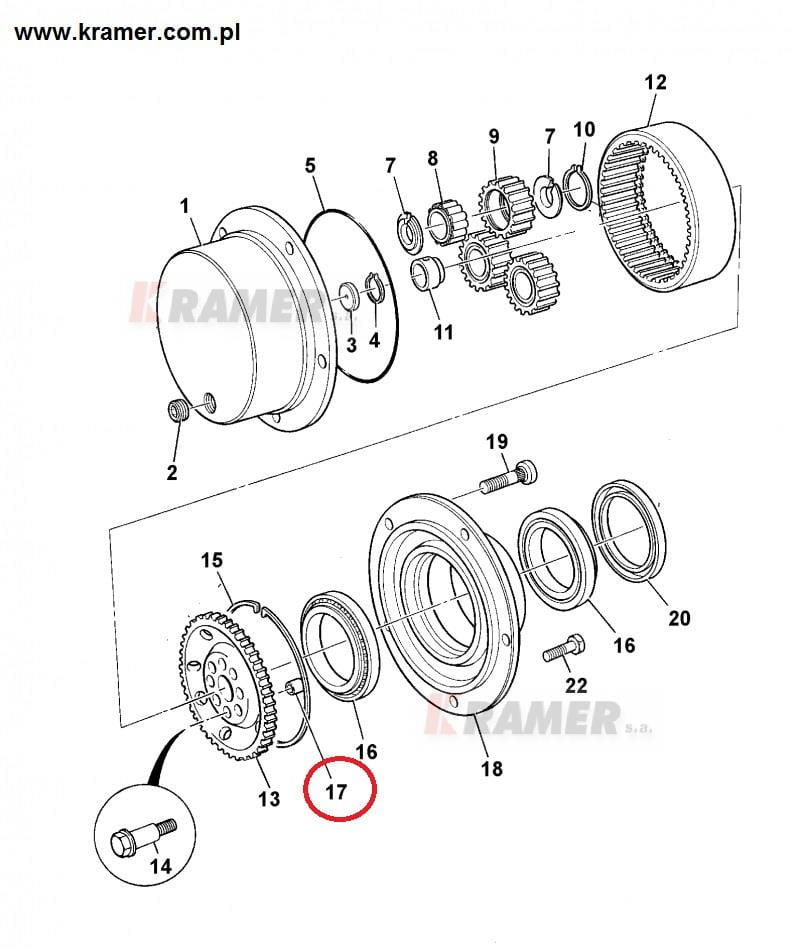 Tulejka śruby koła centralnego stosowana w maszynach JCB