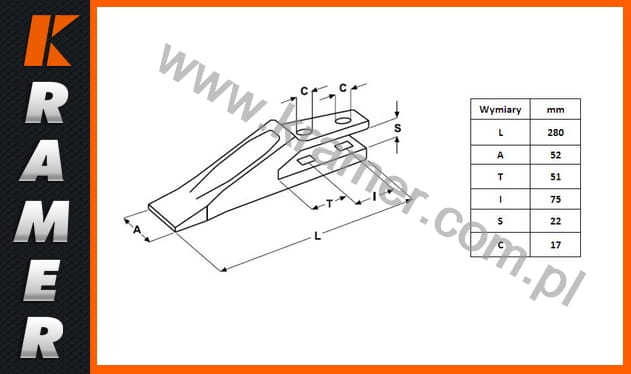 Przeznaczony dla łyżek o grubości lemiesza 20 mm.