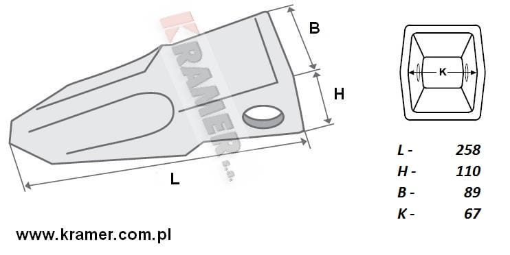 Kształt zęba umożliwia lepszy opływ materiału oraz lepszą penetrację gruntu.Posiada wzmocnione ścianki kieszeni, ścięte ostrze dla zwiększenia penetracji podłoża. Żebro wzdłuż zęba wzmacnia go i optymalizuje proces samoostrzenia podczas pracy. Wzmocniona podstawa zęba znacząco zwiększa trwałość zęba.