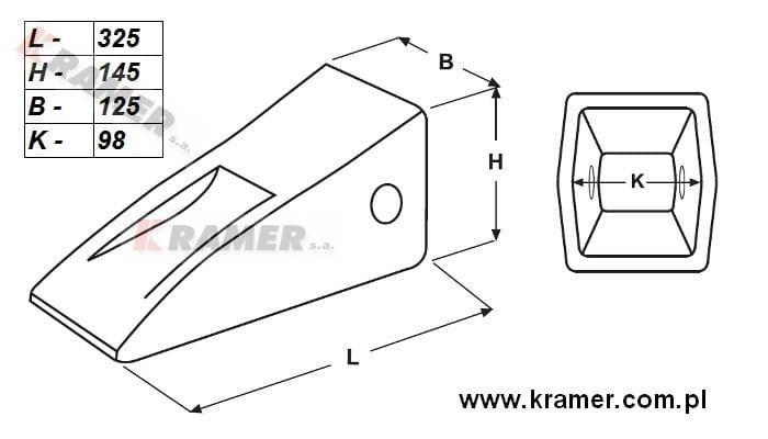 Ząb systemu Cat J460 o wzmocnionej konstrukcji. Posiada grubsze ścianki i jest dłuższy od zęba standardowego.