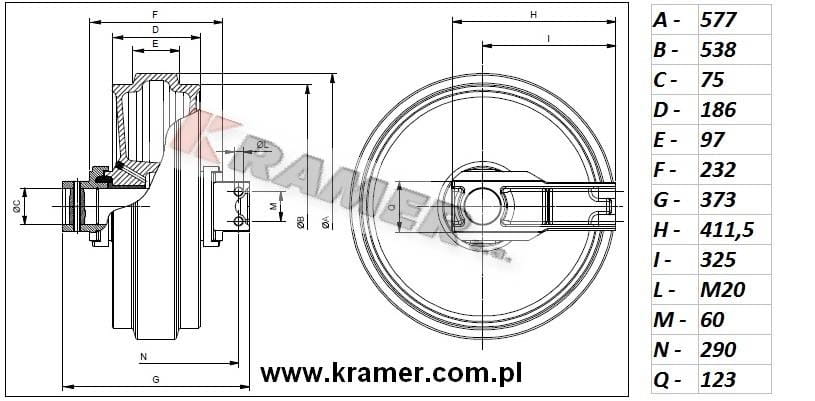 Kompletne koło napinające gąsienicę stosowane m.in. w koparkach CATERPILLAR 325