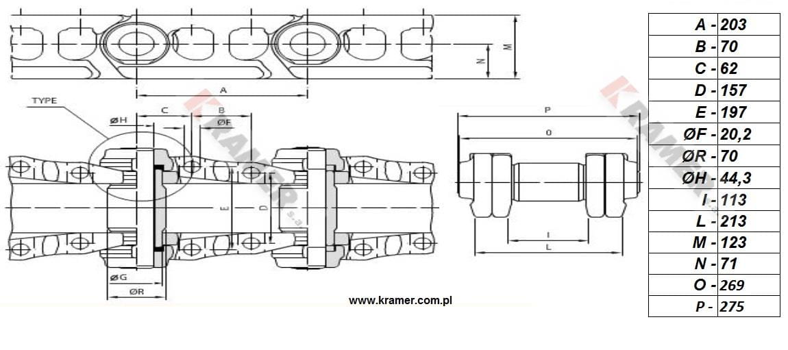 Smarowany łańcuch spycharkowy gąsienicy typu SALT ( SEALED AND LUBRICATED - uszczelniany i olejowany) zamykany na sworzeń spinający. Stosowany w spycharkach typu Staliniec T-130  T-170  B10  DZ27S.